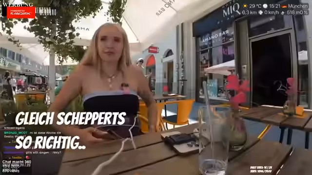 05:19:11Der Stream beginnt mit privaten Gedanken über die Unlust am Joggen, die trotz positiver Assoziationen mit Sportlichkeit immer wieder scheitert. Es folgen technische Schwierigkeiten bei der geplanten Übertragung aus den Bergen, da das Internet instabil ist. Anschließend diskutiert die Streamerin die gesellschaftliche Beobachtung, dass optisch ansprechende Frauen auf Twitch schneller Aufmerksamkeit erhalten, was das Publikum interaktiv zu ihren eigenen Gewohnheiten fragt. Ein kurzer Moment der Verwirrung entsteht durch das Auftauchen einer Person namens Jassi im Chat, deren Identität zunächst unklar ist.
