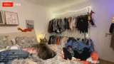 07:26:22Die Vorstellung der Kleidung wird fortgesetzt, mit einem Fokus auf Lieblingsstücke wie Oversize-T-Shirts und Hoodies. Sie zeigt Merchandise von anderen Streamern und spricht über ihre Vorliebe für große, bequeme Kleidung. Während dieses Ausflugs in ihre Garderobe wird der Stream von den Interaktionen mit ihren Katzen Sky und Kito unterbrochen. Kito zeigt verstärktes, destruktives Verhalten, indem er Kleidungsbügel zerbeißt und sie als Spielzeug betrachtet, was die Streamerin verärgert und besorgt zugleich ist.
