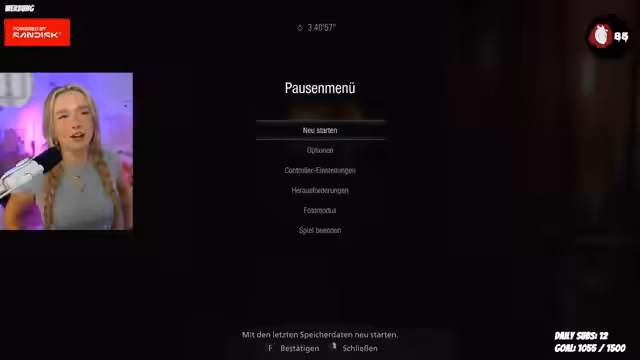00:11:50Der Stream beginnt mit einer lockeren Begrüßung der Zuschauer. Geplant ist ein wiederholtes Resident Evil-Spielen kombiniert mit Laufen auf dem Walking Pad. Die Streamerin gibt Einblicke in ihren aktuellen Zustand, wie fettige Haare, eine Notfrisur und ein Katzenhaar im Auge. Sie erwähnt die Vorliebe für Metal- und Punkrock-Cover von Popsongs, die sie über TikTok entdeckt hat, und äußert sich dankbar für die immense Zuschauer-Loyalität und die damit verbundene hohe Watchtime. Ihr Lifestyle als Twitch-Streamerin wird als positive Alternative zum Büroleben dargestellt, in dem sie sich frei machen kann, ohne ständig kommentiert zu werden.