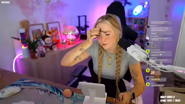02:23:04Unterbrochen vom Gaming, beschäftigt sich die Streamerin mit alltäglichen Aufgaben wie der Suche nach einem neuen Mauspad. Sie zeigt sich anspruchsvoll in der Gestaltung und favorisiert dabei Pastellfarben und Dark-Fantasy-Elemente. Auch die Katze Kito fordert Aufmerksamkeit und sorgt für Ablenkung. Sie berichtet zudem von ihren sportlichen Plänen wie Radtouren und der Pflege ihres Fahrrads, um sich auf die neue Radsaison vorzubereiten. Ihr Alltag ist geprägt von Multitasking und spontanen Abschweifungen.