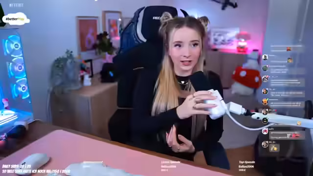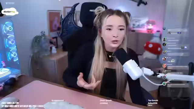 02:30:33Die Streamerin kommentiert ihr Outfit, ein komplett schwarzer Einteiler, passend zur Frisur mit zwei Zöpfen. Sie erwähnt einen Follow von Martin und entschuldigt sich, dass sie möglicherweise Musikwünsche im Chat übersehen hat. Es folgt eine Diskussion über Sperren im Chat, wobei die Streamerin erklärt, dass sie mit anderen Streamerinnen eine geteilte Sperrliste führt, um problematische Nutzer zu identifizieren. Sie erwähnt, dass gesperrte Benutzer trotzdem schreiben können, aber die Moderatoren sehen zuerst, was los war. Die Streamerin liest eine Nachricht vor, die von einem gesperrten Nutzer stammt und in der dieser sich als 'Legion' bezeichnet. Sie stellt klar, dass der echte 'Legion' Leute entsperrt und nicht trollt. Abschließend erwähnt sie, dass sie mit einigen anderen Streamerinnen eine geteilte Sperrliste hat, um besser gegen Trolle vorgehen zu können.