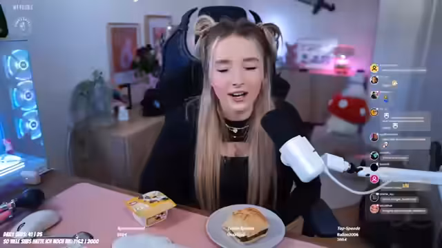 01:28:23Die Streamerin spricht über anfängliche Schwierigkeiten, die perfekte Einstellung für ihren neuen Airfryer zu finden, im Vergleich zu ihrem alten Modell, das nur Airfryen konnte. Sie bedankt sich herzlich für die erhaltenen Geschenke und betont, wie wichtig es ist, zwischendurch etwas zu essen, besonders nach dem Kaffeetrinken, um ihren Blutzuckerspiegel stabil zu halten. Sie erklärt, dass ihr Frühstück erst um 13 Uhr stattfindet und sie daher während des Redens Energie benötigt. Die Streamerin bedankt sich für den Support der Community und merkt an, dass sie noch nie so schnell in ihrem Dirndl war, was sie auf die Notwendigkeit zurückführt, sich um ihren Körper zu kümmern, wenn sie viel redet.