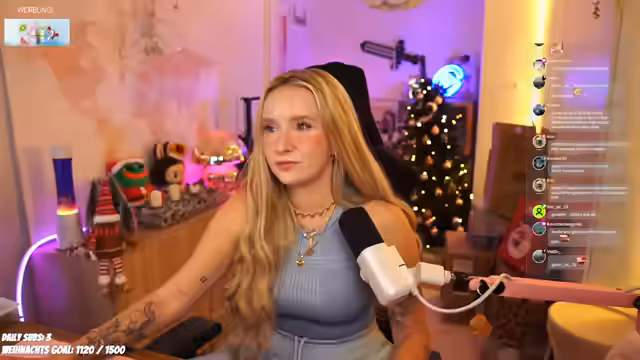 04:53:51Die Streamerin teilt Erlebnisse von einer Weihnachtsfeier mit Bierpong und Erinnerungen an Partys mit Meta-Brillen für Fotos. Sie diskutiert Silvesterpläne: Lieber streamen als feiern, da Feiern stressig sei. Ihre Katzen reagieren empfindlich auf Böller, weshalb sie ein Böllerverbot befürwortet. Sie bestätigt, dass ihr Stream-Rhythmus vormittags/mittags liegt (passend zum Namen 'minuself'), um einen konstanten Arbeitsalltag zu simulieren.