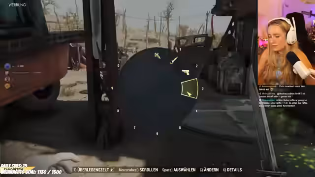 02:53:25Sie entdecken ein Camp mit einem funktionierenden Whirlpool, in dem sie ein Gruppenfoto machen und baden. Dabei kommt es zu humorvollen Momenten, als der Streamer Badewaschmittel hinzufügt und Radioaktivität im Wasser thematisiert wird. Anschließend besichtigen sie weitere kreative Camps, darunter ein 'Lack und Leder'-Design und ein Roadside-Camp. Sie scherzen über Hygiene in der apokalyptischen Welt und bewundern die Vielfalt der Community-Bauten.