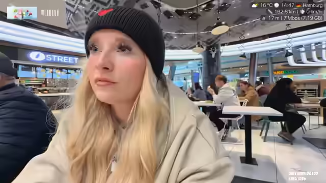 04:47:32Die Streamerin äußert sich begeistert über das Wetter in Hamburg und plant, etwas Gutes zu essen. Sie erwähnt, dass sie in jeder Großstadt Baustellen sieht und sucht einen schönen Platz zum Sitzen, obwohl das Internet kurzzeitig ausfällt. Es wird überlegt, sich in der Nähe des Wassers hinzusetzen, und ein Gespräch über Mietpreise in Hamburg entsteht. Die Streamerin findet die Mietpreise günstig und vermutet, dass dies auf Kontakte zurückzuführen ist. Sie erwähnt einen Hamburger Bürgerentscheid und überlegt, ihre Handykette anzubringen, um das Handy vor Diebstahl zu schützen. Eine Fontäne wird betrachtet, und die Höhe wird geschätzt. Es wird erwähnt, dass ein Besuch bei Holle's Döner geplant ist, und die Streamerin äußert sich positiv über die Sitzmöglichkeiten in Hamburg. Es wird überlegt, kurz etwas zu frühstücken und Automaten zum Bestellen zu nutzen.