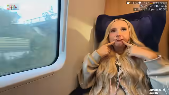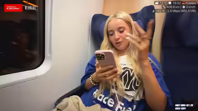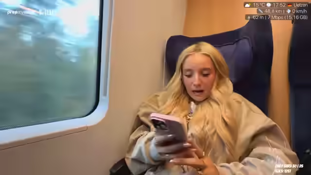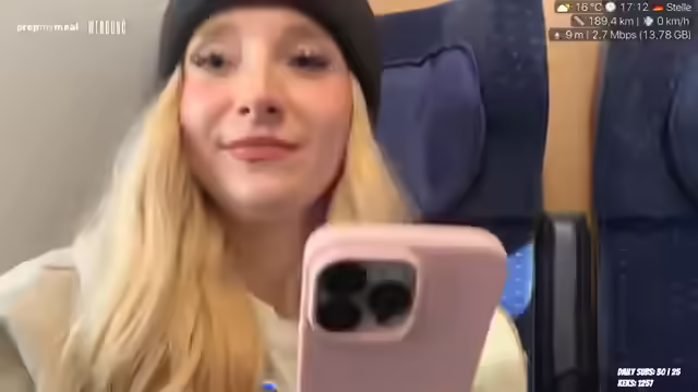 06:48:34Es wird über Probleme mit dem Internet in der Bahn diskutiert und die Frage aufgeworfen, ob man zu schnell in andere Netze wechselt. Die Geldverschwendung durch schnelles Fahren wird angesprochen. Ab 160 km/h kämpft das Auto ums Überleben. Der Zug steht immer noch in der Abstellung. Die zerstörte Halterung für das Handy wird erwähnt und die Hoffnung geäußert, dass die neue mit MagSafe funktioniert. Es wird die Möglichkeit erwähnt, Autofahrten zu streamen. Ein Dankeschön für 14 Monate Support wird ausgesprochen. Kanalpunkte können für Timeouts genutzt werden, aber nur einmal am Tag, um Mobbing zu verhindern. Fliegen wäre günstiger und schneller gewesen, aber ist schlecht für die Umwelt. Es wird überlegt, sich in der Bahn abzuschminken und eine Tuchmaske zu benutzen. Der Wunsch, wieder in der Schweiz zu streamen, wird geäußert.