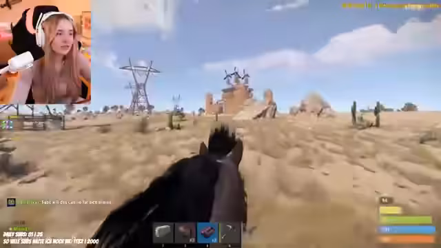 06:12:37Minuself betont, wie viel Spaß ihr das Spiel bereitet, besonders die entspannten Interaktionen mit anderen Spielern. Sie plant, in Anlehnung an ein Bild, das sie Mitashi geschickt hat, mit C4 ins Spiel zu rennen. Sie findet ein weiteres Pferd und überlegt, eine Pferdesammlung anzulegen. Sie plant, vor Einbruch der Dunkelheit noch zu looten und dann nach Hause zu gehen, um am nächsten Tag die Stadt oder das Raketen-Ding zu erkunden. Währenddessen wird über Essensbestellungen diskutiert und Minuself äußert den Wunsch, nie wieder asiatisch in Deutschland zu essen, nachdem sie in Asien so gutes Essen hatte. Abschließend äußert sie Angst vor bestimmten Spielern und deren Chats, da diese sie tot sehen wollen.