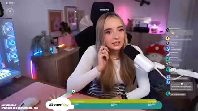 01:15:55Die Streamerin spricht über alltägliche Probleme wie Bauchschmerzen und die Anstrengung des Duschens, wobei sie den Duschprozess als langweilig empfindet und versucht, ihn durch Wasserradios oder das Anschauen von Serien zu unterhaltsamer zu gestalten. Sie erzählt von Phasen der Prokrastination während des Studiums, in denen sie ihr Zimmer neu gestrichen oder umgeräumt hat, anstatt zu lernen. Zudem äußert sie sich zu Kommentaren im Chat, geht auf Geburtstagswünsche ein und teilt mit, dass sie bald 28 wird und eine 'Beerdigungsparty' für ihre 20er plant. Sie erwähnt, dass sie TikTok besser findet als Instagram, besonders wegen der Community und der lustigen Kommentare, und gibt ein Beispiel anhand von Kommentaren zu einem TikTok-Video über eine Ameise, die zu humorvollen Reaktionen und Profilbildänderungen führten. Die Streamerin betont, wie sehr sie die englischsprachigen Kommentare liebt und wie diese die Plattform ausmachen. Abschließend erwähnt sie ein Clip-Profil, das Highlights hochlädt, und findet die Inhalte dumm und stumpf, aber unterhaltsam.
