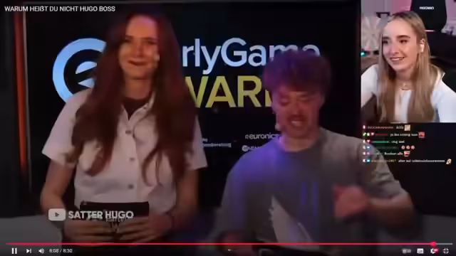 06:52:32Die Streamerin berichtet von einer Kostümprobe und erwähnt Clips, in denen Sidney und Willi Hugo gaslighten. Sie spricht über ein TikTok-Video, in dem jemand Zarex ähnlich sieht, fast wie ein Cousin. Sie beschreibt die Person als schlimmer als Zarex selbst und fragt sich, ob sie sich in einer Matrix befindet. Ronny Berger wird im Stream begrüßt, der als Bilgerkugel verkleidet ist. Es wird über einen Größenunterschied bei einer Moderation gesprochen und wie dieser durch einen Trick ausgeglichen wurde. Der Chat feiert den Beginn der Early Game Awards. Die Streamerin lobt Ronny Berger als einen Gute-Laune-Streamer, der positive Energie verbreitet. Sie betont, dass sie selbst auch lieber Inhalte konsumiert, die gute Laune machen, anstatt sie runterzuziehen. Sie erwähnt, dass sich Leute oft über Dinge beschweren und dadurch andere vertreiben. Sie erwähnt ein Hugo-Video und betont, dass sie nicht viele Reaction-Streams schaut.