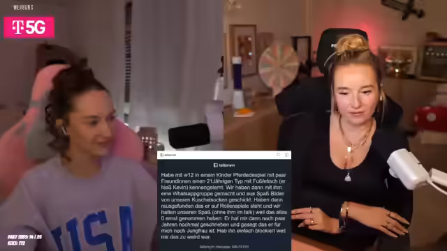 06:17:31Der Stream thematisiert das aggressive Verhalten von Erwachsenen gegenüber Kindern in Online-Spielen, wie ein Fall mit einem 21-jährigen Fußfetischisten, der mit 12-jährigen Mädchen in Kontakt trat. Dies ruft starke Reaktionen hervor und führt zu einer Diskussion über den mangelnden Schutz von Kindern im Netz. Es werden persönliche Erinnerungen an Spiele wie Habbo geteilt und Tipps für den verantwortungsvollen Umgang mit den Kindern im Internet gegeben.