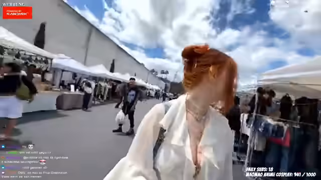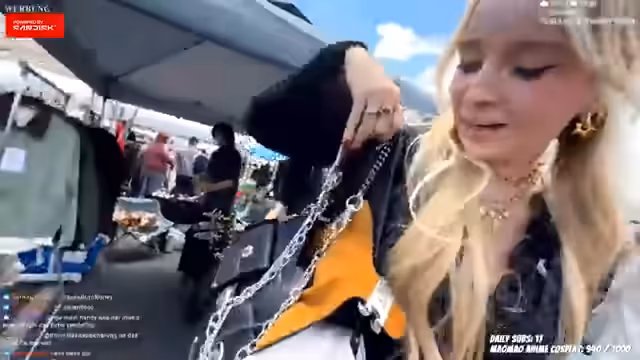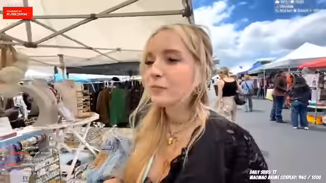 00:55:04Die Streamerin und ihre Begleiter erreichen den Flohmarkt in Los Angeles und beschreiben die Stimmung. Sie zeigen verschiedene Kleidungsstücke wie Racer-Jacken und Tops, die sie für cool befinden. Es gibt jedoch ein Problem mit der Bezahlung, da sie keine passenden Apps wie Venmo oder Cash App aus Deutschland nutzen können. Sie beschreiben auch verschiedene Trödelstände und Vintage-Sachen, die sie zum Verkauf anbieten.