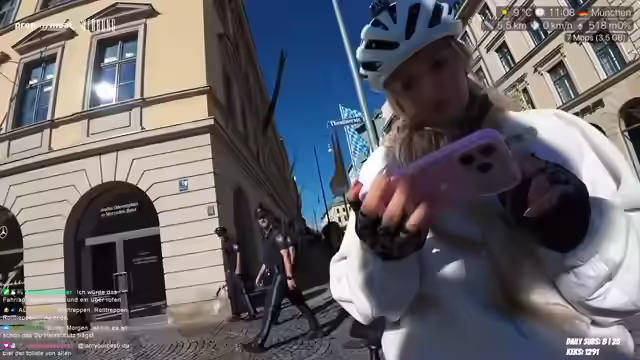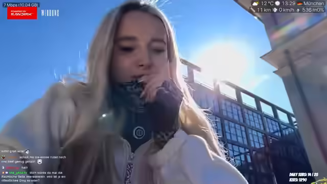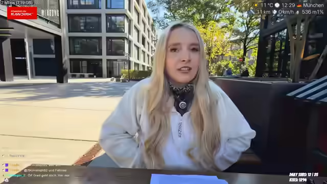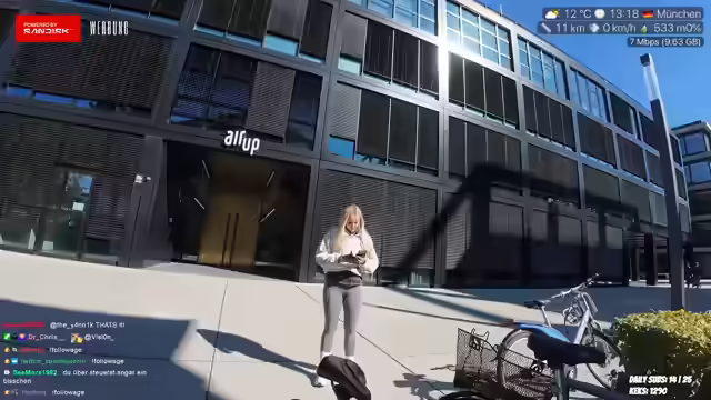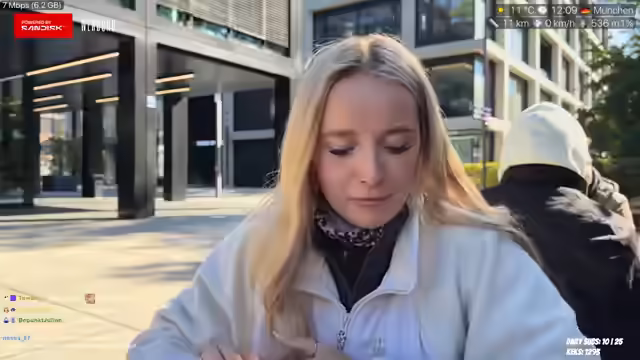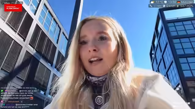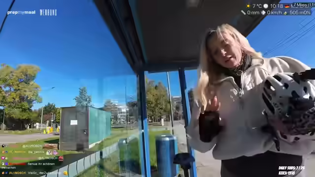 00:09:42Die Streamerin begrüßt die Zuschauer und spricht über das kalte Wetter von etwa 6 Grad, wobei es sich wie 45 Grad anfühlt. Sie erwähnt, dass es windig ist, was die Bedingungen zusätzlich erschwert. Es wird überlegt, ob es die letzte Fahrt mit dem Fahrrad für dieses Jahr sein wird, da es immer kälter wird. Die Streamerin erzählt von Schwierigkeiten auf dem Weg zum Startpunkt aufgrund des starken Windes. Sie spricht über Drohnen in München und die dadurch ausgelösten Flugverkehrsalarme. Es wird diskutiert, ob es überhaupt ungeeignetes Wetter zum Radfahren gibt, wobei die Streamerin Wind besonders unangenehm findet. Sie bedankt sich für die Unterstützung und erklärt, dass sie heute kein Trinkspiel veranstalten wird. Die Route ist noch unklar, aber es soll die letzte Fahrt mit dem Fahrrad werden, da es zu kalt wird. Die Streamerin erwähnt, dass sie lange gebraucht hat, um zum aktuellen Standort zu gelangen, da es sehr windig war und sie kämpfen musste.