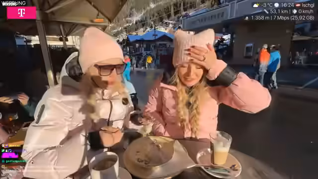 00:54:12Das zentrale Thema des Streams bleibt das anhaltende Bauchproblem der Streamerin. Sie und ihre Begleiterin haben ständig Angst, auf der Skipiste dringend die Toilette zu benötigen. Sie betonen die Gefahr, dass man bei einem solchen Vorfall in sozialen Medien viral gehen könnte, was sie als sehr unangenehm empfinden. Die Sorge, die Aussicht zu verderben, und die Angst vor unangenehmen Gerüchen stehen im Vordergrund, als sie über ihre Bedenken sprechen. Das Thema ist so präsent, dass es fast schon zum Running Gag wird.