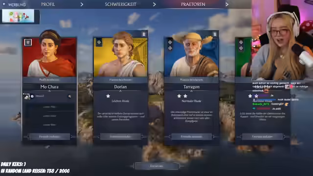 03:29:42Stream beginnt mit der Planung zur Besiedlung einer neuen Insel. Makrelen werden als entscheidende Ressource identifiziert und deren Fruchtbarkeit untersucht. Es werden verschiedene Inseln mit unterschiedlichen Vorkommen wie Oliven, Harz und Marmor bewertet. Der Fokus liegt darauf, eine küstennahe Stadt zu errichten, um die Wirtschaft effizient aufzubauen und Handel zu betreiben. Gleichzeitig wird die persönliche Planung geteilt, dass an diesem Tag Fahrrad gefahren werden soll.