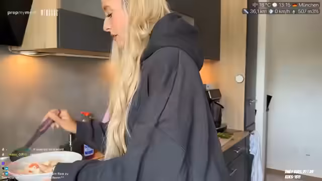 02:48:12Die Suppe ist nun fertig gekocht und wird mit Limettensaft und Koriander garniert. Die Streamerin probiert das Gericht und stellt fest, dass es zwar gut schmeckt, aber noch etwas Würze vermissen lässt. Anschließend wechselt sie den Kamerawinkel, um ihr Arbeitszimmer zu zeigen, und präsentiert ihr Streaming-Setup, einschließlich Monitore, Stream Deck und Promptor. Sie gibt einen Einblick in ihre Hardware-Komponenten und ihre Meinung zum aktuellen PC.