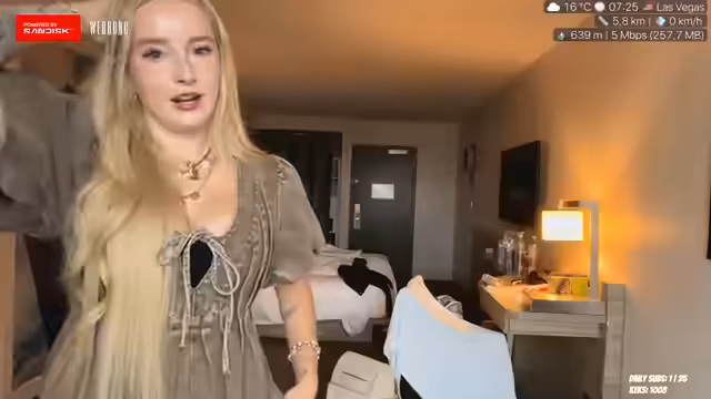 00:00:00Nach der Ankunft in Las Vegas wird der Stream gestartet. Der Streamer befindet sich in einem Hotel und bereitet sich für den Tag vor. Es werden technische Vorbereichungen getroffen, wie das Anlegen einer amerikanischen SIM-Karte für besseres Internet und das Packen von Ausrüstung wie einer Powerbank und einer Kamera. Der Streamer berichtet von einem Vogel, der kurz zuvor auf den Rücken geschissen haben soll, was für eine kleine Verwirrung sorgte. Die Stimmung ist ausgelassen und es gibt erste Blicke auf das Hotelzimmer und die Aussicht.