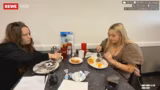 00:53:30Im Diner 'Mr. Mamas' wird die Speisekarte vorgestellt. Der Streamer entscheidet sich für 'Steak and Eggs', während Thea 'Blueberry Mama's Shortstack' bestellt. Während des Wartens auf das Essen werden Pläne für den restlichen Tag geschmiedet. Man plant, in die Natur zu den Bergen zu fahren und den dortigen Internetempfang zu testen. Außerdem wird ein Besuch im Saloon von Goodsprings für Abends angekündigt, wo eine Karaoke-Party stattfindet.