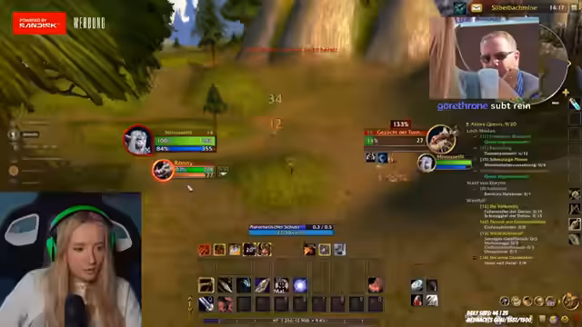 09:10:11Der Streamer ist mitten im Gameplay von World of Warcraft und sammelt Quests im Sumpfland. Er unterhält sich dabei mit seiner Community über seine Reise durch das Spiel. Gleichzeitig spricht er über seinen bevorstehenden Urlaub in Thailand für ein Sport-Retreat, der seine Motivation für das Früh aufstehen unterstreicht. Ein Community-Mitglied, das ihn seit Jahren nur mit "hey" anschreibt, ist ebenfalls Thema, und der Streamer witzelt, dass dieser ihn anrufen solle, um ihn bei einem Event zu treffen.
