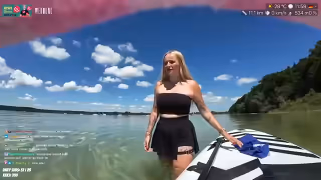 02:51:14Nachdem die Kamera wieder geladen ist, setzt die Streameren ihre Tour fort. Sie beschreibt das Wasser als warm und faszinierend, besonders die vielen kleinen Fische und Muscheln. Sie erwähnt, dass sie nicht mehr so friert und nutzt die Zeit, um ihre Routine zu erklären und über das Gefühl zu sprechen, wenn sie auf dem Paddleboard einschläft. Sie lobt den Ammersee und den benachbarten Wörthsee als sehr geeignete Orte für Aktivitäten.