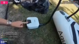 00:09:42Der Fokus liegt auf der Vorbereitung des Stand-Up-Paddleboards. Es wird die elektrische Luftpumpe vorgestellt und in Betrieb genommen, um das Board aufzublasen. Es gibt leichte Unsicherheit bei der Bedienung der Pumpe und der richtige Druck wird langsam ermittelt. Der Streamer berichtet von einer Luftpumpe, die per Akku funktioniert und als sehr effektiv beschrieben wird. Die Angst vor zu hohem Druck ist ein wiederkehrendes Thema. Die Flosse des Boards wird montiert, um die Fahrt zu ermöglichen. Die Ausrüstung, wie das Paddel, wird geprüft und für einsatzbereit befunden.