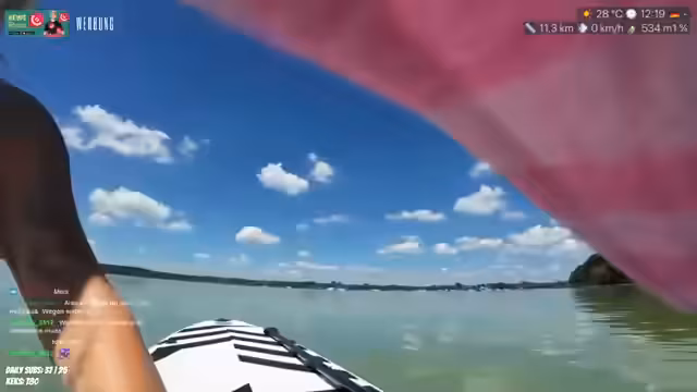 02:12:28Ein plötzliches großes Geräusch im Wasser führt bei der Streamerin zu einer massiven Panikattacke. Sie ist überzeugt, einen riesigen Fisch gesehen zu haben und fürchtet nun um ihre Sicherheit, obwohl sie schwimmen kann. Sie äußert ihre tiefe Angst vor großen Tieren im Wasser, die sie auf frühere Erlebnisse mit ihrem Angler-Vater zurückführt. Die Situation so sehr angespannt, dass sie den Gedanken an einen Sturz vom Board oder einen Angriff eines großen Fisches sehr belastet.
