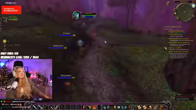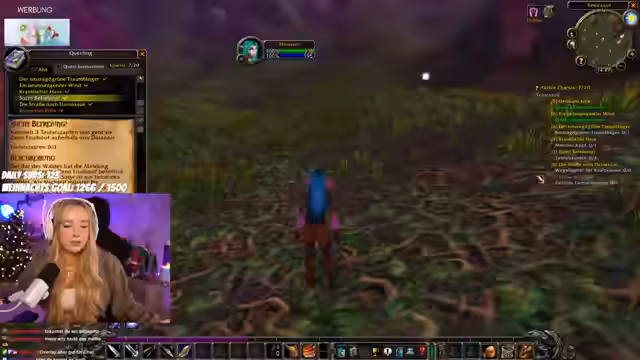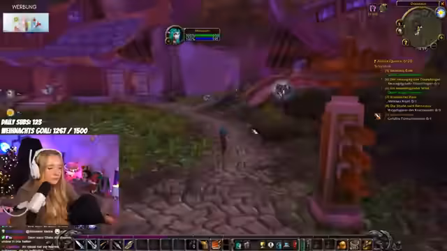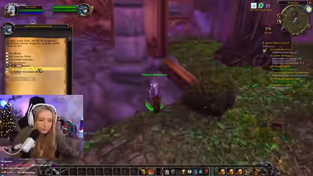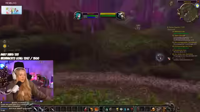 01:11:00Der Streamer startet im Schneegebiet mit einem Nachtelf-Charakter. Es geht um Addon-Empfehlungen, die per Excel-Tabelle gesammelt werden sollen. Ein Eulen-Pet wird direkt im Startgebiet geplant, während der Chat Schwarmwissen zu Quests und Gebieten wie dem Waldweber-Distrikt teilt. Der Sound wird angepasst und das Pedal neu eingestellt.