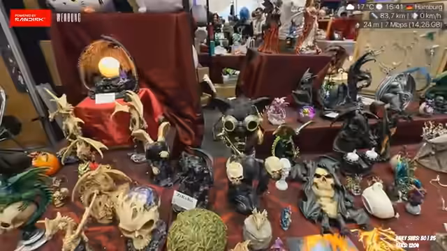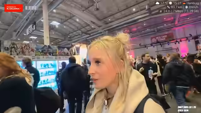 04:46:12Die Streamerin erkundet die Polaris Messe in Hamburg und ist beeindruckt von der Größe und Vielfalt der Veranstaltung. Sie erwähnt das Treffen mit verschiedenen Freunden und Bekannten, die ebenfalls auf der Messe anwesend sind. Besonders positiv fällt ihr auf, wie viele verschiedene Stände und Produkte es zu entdecken gibt, von Pen & Paper-Zeug über Schmuck bis hin zu Kuscheltieren. Die Messe scheint einen sehr großen Andrang zu haben, was den Streamer überrascht hat, da sie es nicht so groß eingeschätzt hatte.