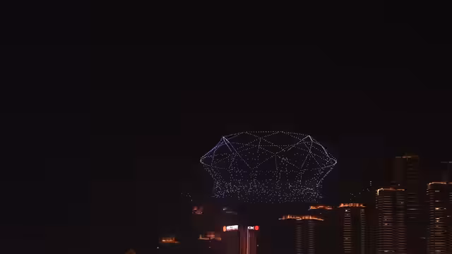 Beginn der weltberühmten Drohnenshow in Chongqing