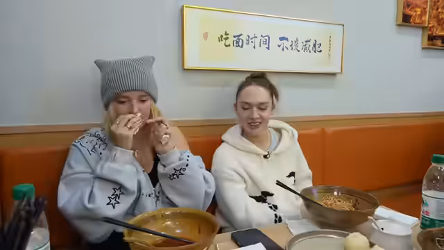 04:27:37Es wird erwähnt, dass Alipay aufgrund fehlender Internetverbindung nicht genutzt werden kann, was die Bezahlung erschwert. Die Gruppe sucht nach Steckdosen, um ihre Geräte aufzuladen, und findet schließlich welche. Die Freundlichkeit der Einheimischen wird positiv hervorgehoben. Es wird eine Diskussion über die Schärfe der Speisen geführt und die Schwierigkeit, Gerichte ohne Koriander zu finden. Die Gruppe bestellt verschiedene Nudelgerichte, darunter hausgemachte, trocken gebratene Erbsen und Hackfleisch mit Nudeln sowie klare Suppe mit Hammelfleisch. Die Vorfreude auf das Essen ist groß, und es wird humorvoll über die Reaktionen auf scharfes Essen gesprochen. Die Gruppe genießt die Atmosphäre und die Gesellschaft, während sie auf ihr Essen wartet.