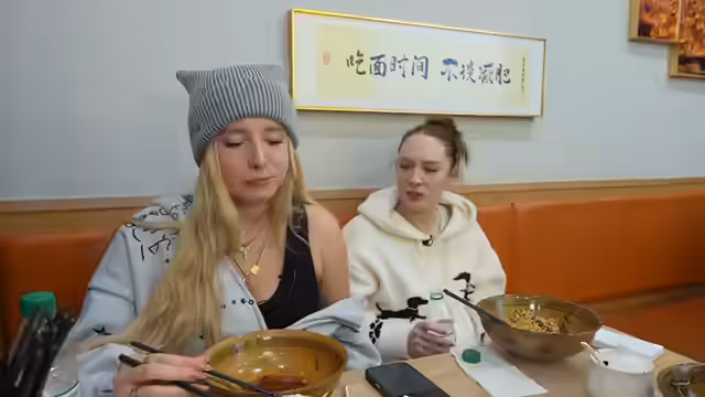 04:12:58Die Gruppe erreicht eine Hauptstraße, wo sie ein Nudelrestaurant vermuten. Die Umgebung wird als modern und metropolartig beschrieben. Sie finden schließlich ein Restaurant, das Chongqing-Nudeln anbietet und gut besucht ist, was als gutes Zeichen gewertet wird. Es treten jedoch Internetprobleme auf, die das Streamen erschweren. Die Gruppe versucht, eine Lösung zu finden, indem sie nach WLAN fragt oder Hotspots nutzt. Die Schwierigkeiten mit der Internetverbindung in China werden thematisiert, auch mit chinesischen SIM-Karten. Trotz der Probleme finden sie einen Platz im Restaurant, und die Stimmung bleibt positiv. Es wird über die Schärfe der Speisen gesprochen und die Vorliebe für Koriander diskutiert. Die Gruppe freut sich auf das Essen und die weitere Reise.
