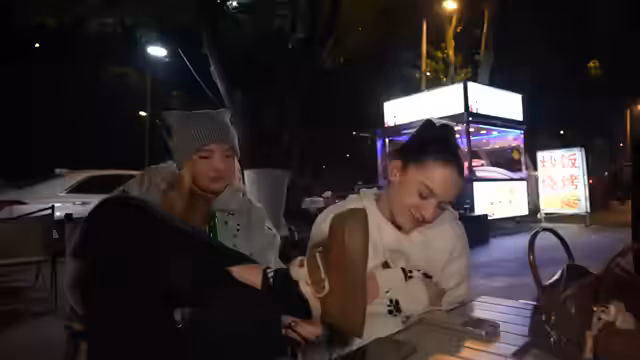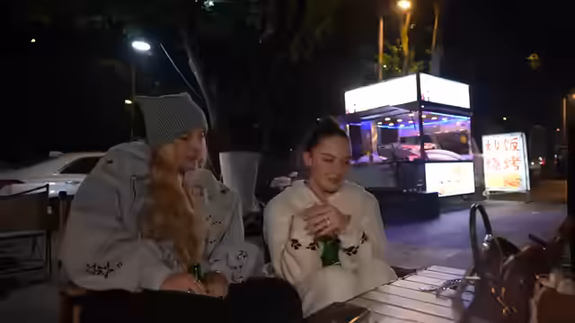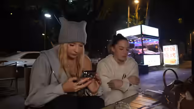 06:38:54Die Gruppe erreicht den Night Market, der als „geliebter Market“ bezeichnet wird. Es wird bemerkt, dass ein weiteres Zelt aufgebaut ist und der Geruch der Spieße in der Luft liegt. Trotz der späten Stunde ist noch einiges los, wenn auch weniger als am Vortag. Die Suche nach der Kartoffelfrau ist erfolglos, da sie bereits nach Hause gegangen ist. Beim Bestellen von Essen treten erneut Probleme mit der Bezahlung per App auf. Es wird die Idee geäußert, Heuschrecken zu probieren, und Rinderspieße werden als Alternative in Betracht gezogen. Die Heuschrecken werden schließlich probiert und als nussig und lecker beschrieben, mit einem Geschmack, der an Speck erinnert. Es wird diskutiert, ob Insekten ein guter Protein-Ersatz sind und ob sie Schmerz empfinden, wobei aktuelle Forschungsergebnisse zu Fischen und Insekten erwähnt werden.