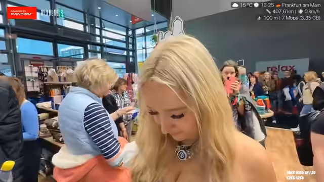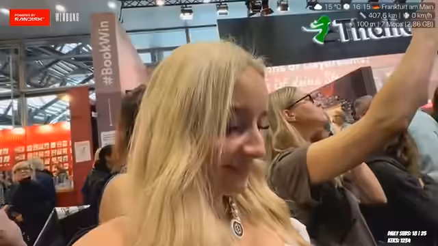 08:09:10Die Ankunft auf der Frankfurter Buchmesse gestaltet sich zunächst etwas unübersichtlich. Es wird nach einer bestimmten Schlange gesucht, die sich aber als bereits geschlossen herausstellt. Der Streamer erkundigt sich den Weg und ist sichtlich beeindruckt von der Größe des Messegeländes und der Menge der Besucher. Er ist auf der Suche nach einem bestimmten Buch, stellt aber fest, dass dieses weiter vorne im Verkauf ist. Eine Begegnung mit einem bekannten Autor, Michael Zockers, wird erwähnt, wobei dessen Stirn und Gesicht kurz erhascht werden können.