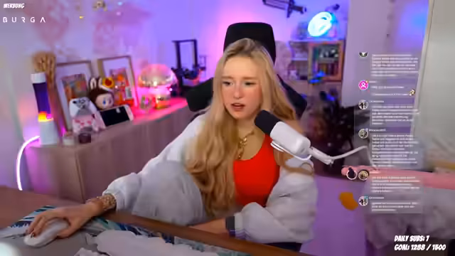 00:00:00Der Stream beginnt mit einer spontanen Diskussion über eine von den Zuschauerinnen als bloß wahrgenommene Körperform. Die Streamerin berichtet, dass sie fast täglich streamt und ungewollt in eine Geschichte mit einem sogenannten 'Grifter' verwickelt wurde. Sie äußert sich humoristisch über ihre Katze 'Sky', die stark zugenommen hat, und gibt Einblicke in ihre Kindheit mit dem Detail, dass sie viele Freunde hatte, aber sehr schüchtern war.