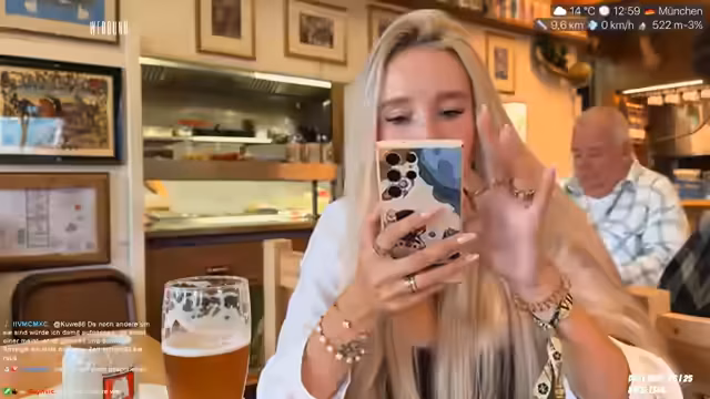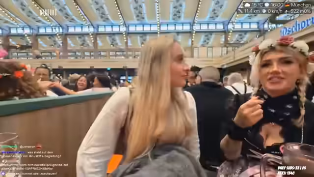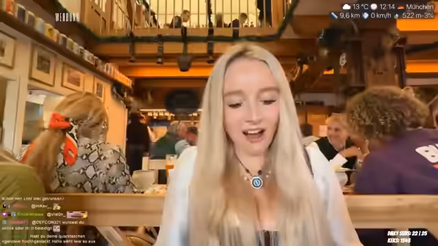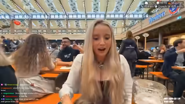 02:56:44Die Atmosphäre des Streams lenkt sich wieder zum aktuellen Geschehen auf dem Oktoberfest. Die Streamerin genießt ein alkoholfreies Weißbier und eine Weißwurst, während sie das Treffen mit ihrer Freundin Teriyaki erwähnt. Sie beschreibt, wie sie das Oktoberfest zum ersten Mal besuchen und von der Größe und dem Trubel angetan ist. Gleichzeitig sind die Temperaturen gesunken, was sie zu Überlegungen über eine angemessene Kleidung für den Abend bewegt.