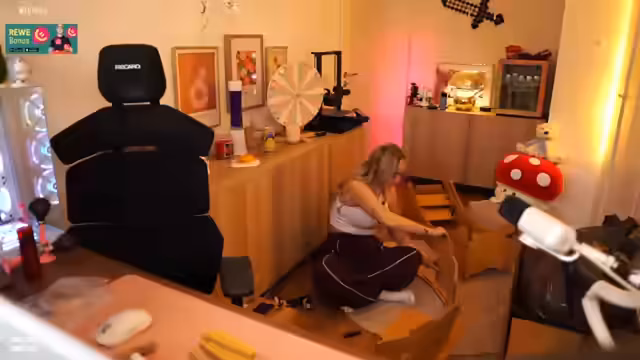 Im Rahmen eines Streams wurde der Aufbau eines XXL-Katzenlaufrads gezeigt. Das Projekt diente der Bewegungsförderung der beiden Haustiere. Die Montage erwies sich als sehr aufwendig und erforderte präzise Arbeit an den einzelnen Platten. Ziel war die Schaffung eines stabilen Rades, das den Tieren im Haushalt Auslauf bietet.