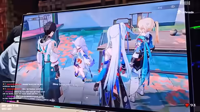 06:59:38Gemeinsam mit den Chat-Mitgliedern wird der Odyssey 3D G90XF Monitor getestet. Obwohl der 3D-Effekt für die Zuschauer nicht sichtbar ist, ist der Streamer von der Tiefe und dem Realismus des Bildes beeindruckt. Er berichtet, dass man sich schnell an das 3D-Erlebnis gewöhnt und hebt besonders die Klarheit in Szenen wie Schnee und Felsen hervor, während er gleichzeitig angibt, keine Schwierigkeiten mit der 3D-Brille zu haben.