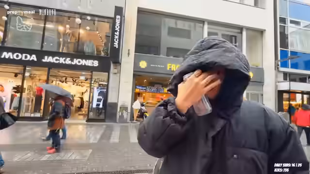 00:25:50Aufgrund der Vorschläge der Community wird der Weg zum Laden Pieck und Kloppenburg angetreten, der als vielversprechend für die Kleidersuche gilt. Die Streamerin ist noch unentschlossen und unsicher, ob sie im Laden streamen darf. Unterwegs äußert sie ihren Kummer über Jetlag, fehlenden Schlaf und das Tragen einer Brille anstelle von Kontaktlinsen. Sie beschreibt die Herausforderungen beim Gepäck und ihre Vorliebe für dunkle Kleider.