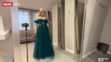 02:38:39Die Streamerin trifft die endgültige Entscheidung für das Waldelfen-Kleid im dunkelgrünen Ton. Das Kleid hat ein Korsett, Blättermuster und einen Beinschlitz. Für den Award-Abend plant sie, das Kleid mit goldenem Schmuck, ihrer Tiara und möglicherweise leichten Elfenohren in den Haaren zu kombinieren. Sie erwähnt, dass sie ihre Haare frisch machen und das Kleid eventuell anpassen lassen wird.