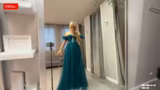 01:18:09Die Streamerin probiert ein Kleid in einem dunkelgrünen Korsett-Stil an, das ihr sehr gut gefällt und zu ihrem Budget von 400 Euro passt. Das Kleid wird als pompös und elegant beschrieben und passt farblich zu ihren Schuhen. Sie ist begeistert, fühlt sich wie eine Prinzessin und denkt über die Kombination mit silbernen Pumps nach, die ebenfalls glitzern würden.