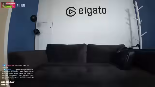 04:22:32Nachdem er im Elgato-Gebäude angekommen ist und das Internet stabilisiert ist, beginnt ein unangekündigtes Interview mit einem anderen Streamer, dem Koch Dominik. Der Streamer interviewt ihn über seinen Weg zum Streamen, seine regelmäßigen Koch-Streams und sein Setup. Dominik erzählt, dass er durch die Zusammenarbeit mit dem Koch Tobi zum Streaming kam, und beschreibt die chaotische aber lustige Atmosphäre in seiner Küche, die von seinem Hund und seinem Katorterror durchzogen ist. Das Gespräch mündet in eine gemeinsame Planung für zukünftige Inhalte und einen Besuch bei Dominik im Sternenrestaurant.