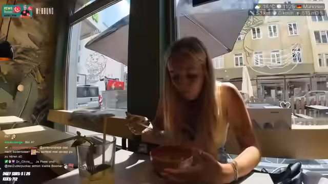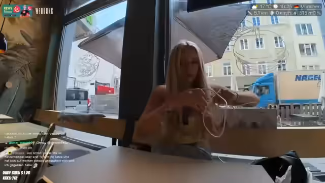 00:51:27Während der Fahrt und im Katzencafé sprechen im Chat persönliche Themen an. Der Streamer erzählt, dass er ursprünglich aus Thüringen stammt und vor dreieinhalb Jahren nach München gezogen ist. Er berichtet über seine komplizierte Beziehung zu seiner Heimatstadt und erklärt, dass die negative Assoziationen hervorruft. Nebenbei erwähnt er seine Nasenhaare, die er ständig stutzen muss, und gibt eine ungewöhnliche, humorvolle Antwort auf die Frage, ob er eine Influencerin sei, indem er sich als Twitch-Streamerin vorstellt.