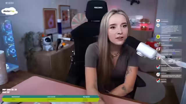 00:09:36Zu Streambeginn tauscht sich die Streamerin mit der Community über verschiedene Themen aus. Sie erwähnt eine Rückkehr ins Streaming nach einer längeren Pause, bedankt sich bei langjährigen Followern für ihren Support und berichtet von ihrer anhaltenden Lungenentündung. Dabei geht sie auf die unangenehmen Nebenwirkungen wie Schmerzen im Brustkorb und Husten ein und erklärt, warum sie aktuell nur kleinere Streams plant, um ihre Genesung nicht zu gefährden. Auch die bereits geplante Bestellung eines Schimmeltests für ihre Wohnung wird thematisiert, da sie vermutet, dass die Erkrankung mit dem Schimmelbefall in ihrem Zimmer zusammenhängen könnte.