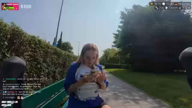 06:21:07Nach dem Essen im Cafe macht sich der Streamer wieder auf den Weg mit seinem Gravelbike. Er erwähnt, dass ihm der Arsch wehtut und er sich Sorgen macht, wieder zu fallen. Er hat eine Fahrradhose an, aber sagt, dass irgendwann auch die beste Hose nicht mehr hilft. Er ist auf dem Weg zu einem Startgebiet und gibt dem Chat Hinweise, wohin er fährt. Er zeigt auch seine Freude an Oldtimer-Autos und erwähnt, dass er gerne alte Autos sieht. Trotz der Beschwerden bleibt er humorvoll und optimistisch.