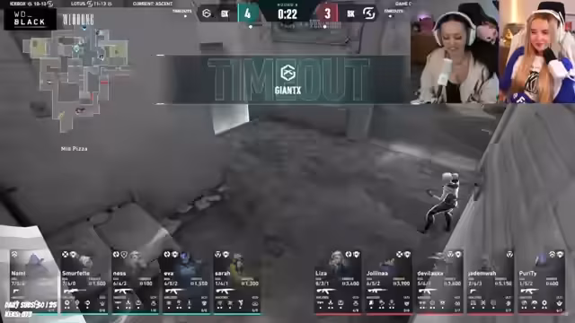 07:58:16Das Spielverlauf von SK wird durch wiederholte taktische Fehler und Zeitouts unterbrochen. Die Kommentatorin kritisiert insbesondere den 'Call' von GX, der ihrer Meinung nach 'hartcore gesplittet' und daher falsch ist. Immer wieder scheitern offensiv-verschwörte Aktionen an mangelnder Koordination oder präziser Verteidigung der Gegner. Nach mehreren verlorenen Runden fordert sie mehr 'Druck' von den Spielern. Die Nutzung der Timeouts wird als notwendig erachtet, um die Teams neu zu orientieren. Kommentator Jasmin äußert ihre Nervosität bei Overtime-Situationen, die bei ihr zu einem Herzrasen führen, was sie als körperliche Reaktion auf die hohe Anspannung beschreibt.