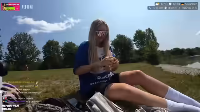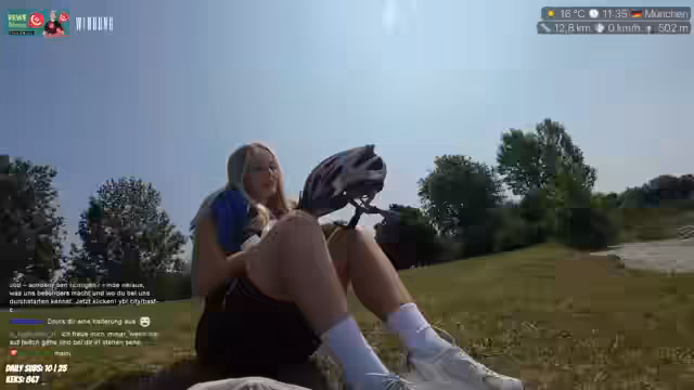 00:45:00Die Streamerin fährt durch München, wobei sie den Straßenverkehr und die Fahrradampeln als herausfordernd empfindet. Sie hat Gegenwind und merkt, dass es sich vom Fitnessstudio-Radfahren unterscheidet. Sie kommt durch einen Friedhof, was sie respektvoll tut und nimmt eine Pause beim Wörthsee. Dabei muss sie feststellen, dass sie keine Taschentücher dabei hat und blutige Knie hat. Sie genießt die Aussicht und das Wasser, das nach Heimat riecht.