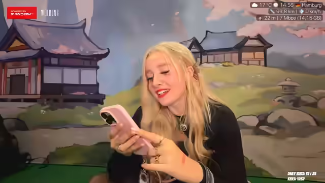 01:32:26Die Streamerin spricht über ihre Vorliebe für Indie-Games, Open-World- und Story-basierte Spiele und erwähnt, dass Valorant ihr meistgestreamtes Spiel ist. Es wird kurz auf Zuschauervorschläge wie Track Simulator, Kingdom Come Deliverance 2 und God of War eingegangen. Sie teilt eine Anekdote über eine Begegnung mit Reefd, einer Variety-Streamerin, die sie als Vorbild sieht, und betont deren freundliche und coole Persönlichkeit. Weiterhin wird die Diskussion über die Vor- und Nachteile von Frauen auf Twitch angeschnitten, wobei sie feststellt, dass Frauen zwar schnell Aufmerksamkeit bekommen, es aber schwieriger ist, die Zuschauer langfristig zu halten und eine Community aufzubauen. Abschließend werden Themen wie Kindheitserinnerungen, ein vergessenes Spezi-Deckel und der Geruch von Landwirtschaft angesprochen, bevor es um Outfit-Entscheidungen geht.