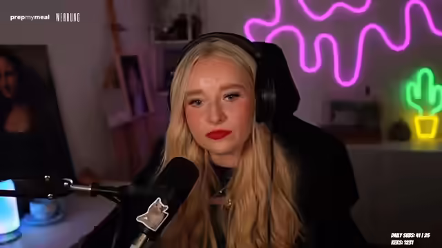 01:41:51Es gibt anfängliche Schwierigkeiten mit dem Mikrofon, die jedoch schnell behoben werden. Der Chat bestätigt, dass der Sound normal ist. Die Streamerin schaltet ein Overlay aus, um private Nachrichten nicht zu zeigen, und lobt das Overlay. Es wird kurz überlegt, Clips anzuschauen oder Musik zu hören. Die Streamerin berichtet von einem Erlebnis, bei dem sie von einem lauten Pupsen aufgewacht ist, und spricht über Magnetfischen. Sie erwähnt, dass sie für viele eine Red Flag sei, weil sie Streamerin ist. Es wird über sexuelle Inhalte im Stream gesprochen und Outfit-Entscheidungen diskutiert. Die Streamerin äußert Bedenken bezüglich möglicher Mundgeruchs und führt einen kleinen Haul vor, bei dem sie neue Ohrringe und eine Haarspange zeigt. Abschließend wird kurz über die Kameraausrüstung (ZV-E10) und deren Streaming-Fähigkeiten gesprochen.