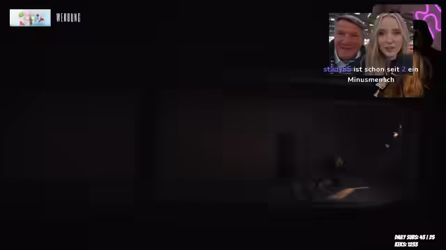 02:20:30Die Streamerin und Alina tauschen Freundschaftscodes aus, um sich im Spiel hinzuzufügen. Es wird über die Vorliebe für dunklere Spiele und gemütliche Atmosphären gesprochen. Die Streamerin entschuldigt sich für eine kurze Abwesenheit und betont, dass dies eine Ausnahme war. Sie wartet darauf, dass Alina die Freundschaftsanfrage annimmt und startet dann Little Nightmares 3. Es wird über komische T-Shirts und das Angebot, ein Dump Blond T-Shirt zu tragen, gescherzt. Nachdem die Freundschaftsanfrage angenommen wurde, startet die Streamerin das Spiel, aber es erscheint alles schwarz. Es wird vermutet, dass die Medienkompetenz der Streamerin nicht mehr so hoch ist, aber sie erklärt, dass sie es einfach vergessen hat. Es gibt Verbindungsprobleme und die Streamerin wird aus dem Spiel geworfen. Abschließend wird über ein Date-Bingo und das Ziel, angeschrien zu werden, gescherzt.