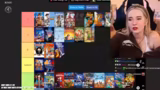 01:44:45Der Stream beginnt mit einer Disney-Filme-Tierlist. Der Streamer gibt zunächst persönliche Vorlieben und Abneigungen an. Toy Story wird als Lieblingsfilm bezeichnet und auf B-Rang gesetzt. Chicken Little wird neutral bewertet. Zu Klassikern wie Aladdin und Hercules werden Erinnerungen geteilt. Neueere Filme wie Frozen werden ebenfalls besprochen und je nach persönlicher Verbindung unterschiedlich bewertet. Es wird deutlich, dass der Streamer viele Filme nicht als Kind gesehen hat.