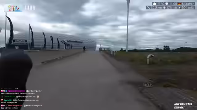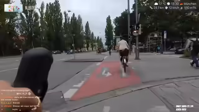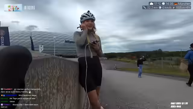 01:42:53Es wird erzählt, dass Reapers die Beinmuskeln gelobt hat, was positiv aufgenommen wird. Es wird über einen geplanten Döner-Kauf gesprochen und die Frage aufgeworfen, ob Freitag ein guter Tag dafür ist. Andy hat zugegeben, einen Freund zu haben, was zu Reaktionen im Chat führte. Die Bildqualität wird bemängelt und die Suche nach der Kamera erwähnt. Es wird bedauert, dass jemand bei der Alpenüberquerung abgesagt hat. Der Streamer fragt den Chat, ob sie Reapers noch einmal im IRL sehen wollen. Es wird kurz auf die Emotes eingegangen und festgestellt, dass nicht von allen Usern Emotes vorhanden sind. In 8 Minuten soll noch einmal ein bestimmter Ort angesteuert und dann im Englischen Garten herumgefahren werden. Ein Call mit Alina wird als positiv beschrieben. Es wird über Bitrate-Schwankungen und das Aussehen des Streams mit einer Kartoffel gesprochen. Andy darf nicht mehr schreiben, da sie jetzt einen Freund hat. Es wird erwähnt, dass Möwen in München gesichtet wurden. Der Streamer hat bereits 13 Kilometer zurückgelegt und plant eine Pause, um auf das Restaurant zu warten, da es angeblich gleich regnen soll. Es wird die Frage einer Zuschauerin beantwortet, ob der Streamer eine Influencerin ist (Antwort: Twitch-Streamerin). Die Notwendigkeit vieler Dinge in den Rahmentaschen zum Streamen wird betont. Technische Probleme mit der App werden thematisiert, wodurch Subs und Follows nicht angezeigt werden. Es wird sich für die ganzen Follows und den Support bedankt, den der Streamer nicht sehen kann. Das Ziel von 2000 Subs wird angesprochen, um am Rad zu drehen und ein Land mit Annika zu bereisen. Es wird sich für jeden Sub und Resub bedankt. Der Streamer wird für einen Panel-Talk über erfolgreiches Streamen ausgewählt und freut sich darauf. Es wird gehofft, keine tauben Finger zu bekommen und das kalte, windige Wetter bemängelt.